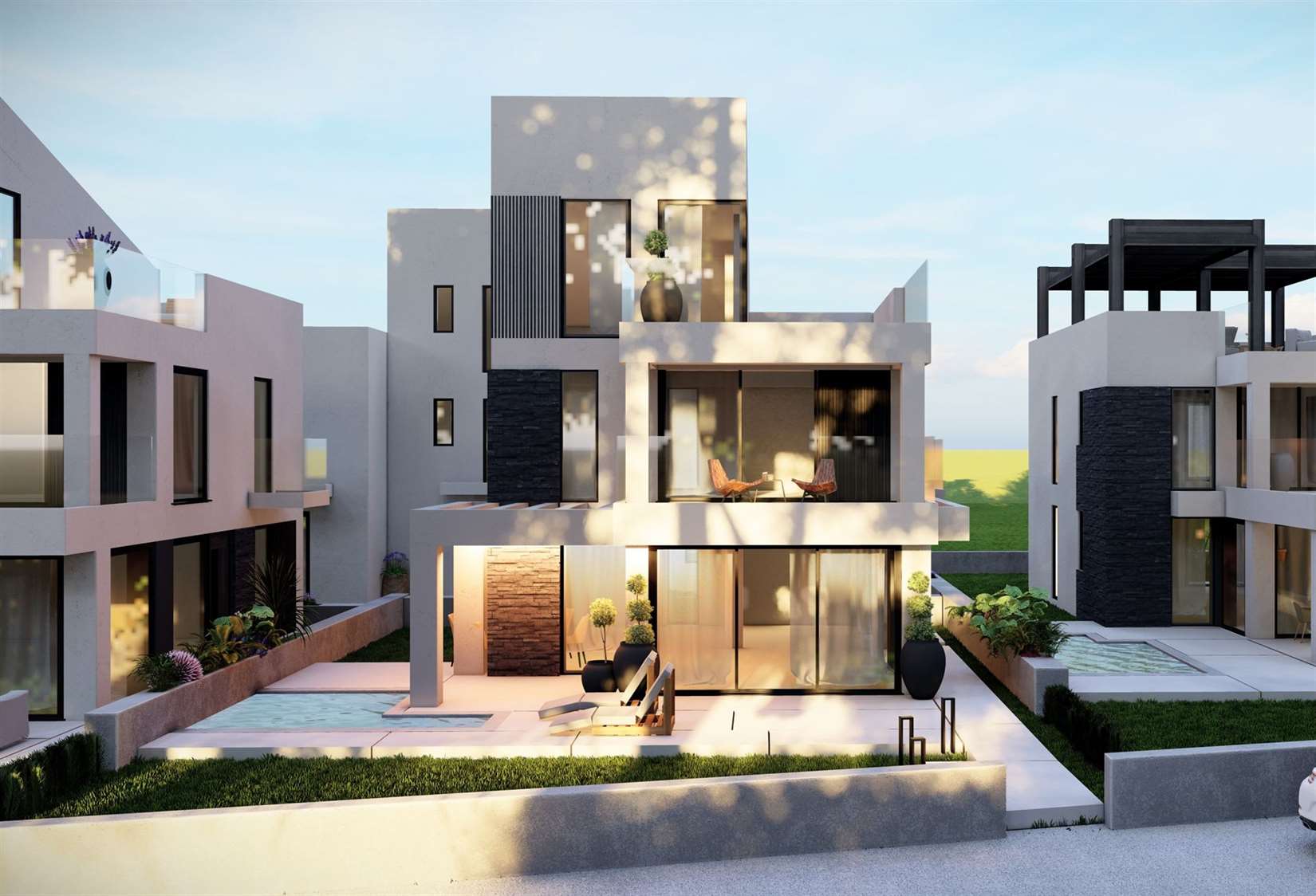 Ένα σύγχρονο και πολυτελές συγκρότημα 7 κατοικιών με ιδιωτικές πισίνες και κήπους στην Παραλία Οφρυνίου